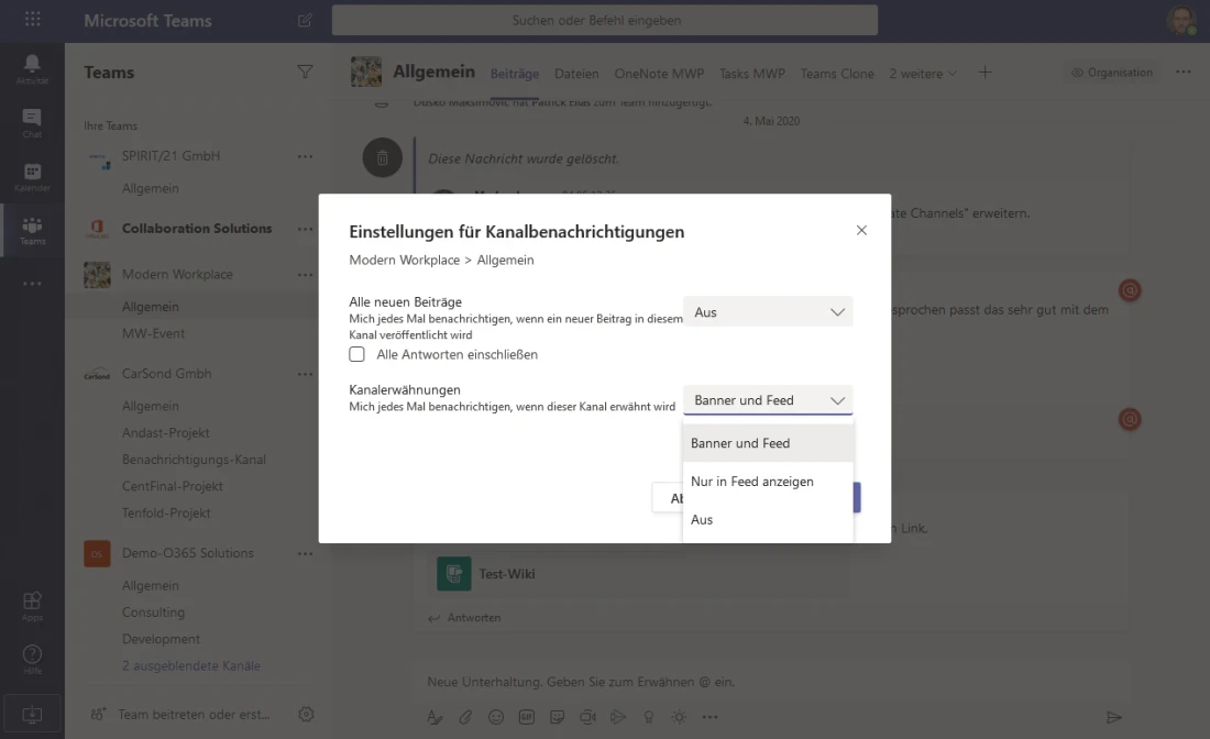 Die Einrichtung einer übersichtlichen Struktur in Microsoft Teams ist genauso wichtig wie das richtige Maß an Benachrichtigungen zu Aktivitäten innerhalb von Teams. Sind die Benachrichtigungsoptionen zu restriktiv eingestellt, bekommt der jeweilige Nutzer unter Umständen zu wenig mit. Im umgekehrten Fall wird der Nutzer hingegen mit nicht wirklich relevanten Benachrichtigungen überflutet und erkennt die wichtigen Aktivitäten nicht mehr.