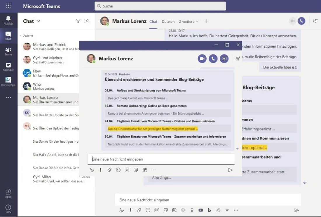 Der Chat in Microsoft Teams als Kommunikationsmittel